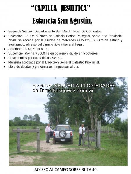 Venta de importante campo para explotación turística,con acceso directo a las costas de Los Esteros de Iberá, Segunda Sección Departamento San Martín, Pcia. De Corrientes.